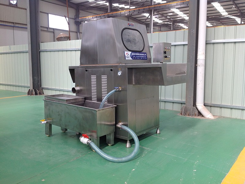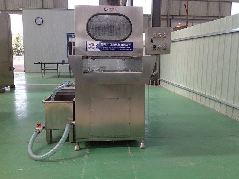本機(jī)可將鹽水及輔料配制的腌漬均勻地注射到肉塊中,縮短了腌漬時間,大大提高了肉制品的口味及出口率??筛鶕?jù)工藝師要求調(diào)節(jié)注射壓力,腌漬劑均勻連續(xù)入肉中,達(dá)到理想的注射效果。本機(jī)設(shè)計(jì)嚴(yán)謹(jǐn)、結(jié)構(gòu)合理、操作簡便,設(shè)有自動保護(hù)裝置,當(dāng)注射針碰到硬物時注射針隨之抬起,不受損壞,是肉制品加工過程中的理想設(shè)備。